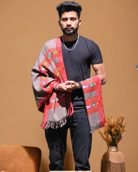 Pure Wool Kullu Shawl Hand Weaving Himachal Handloom (Red)Rated 5.00 out of 5
