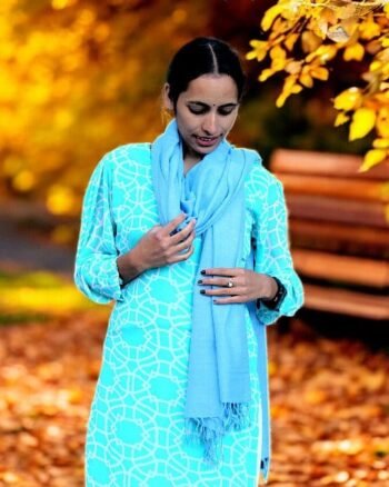 • Kullu Angora Wool Stole/Scarf– Sky Blue – Soft & Lightweight