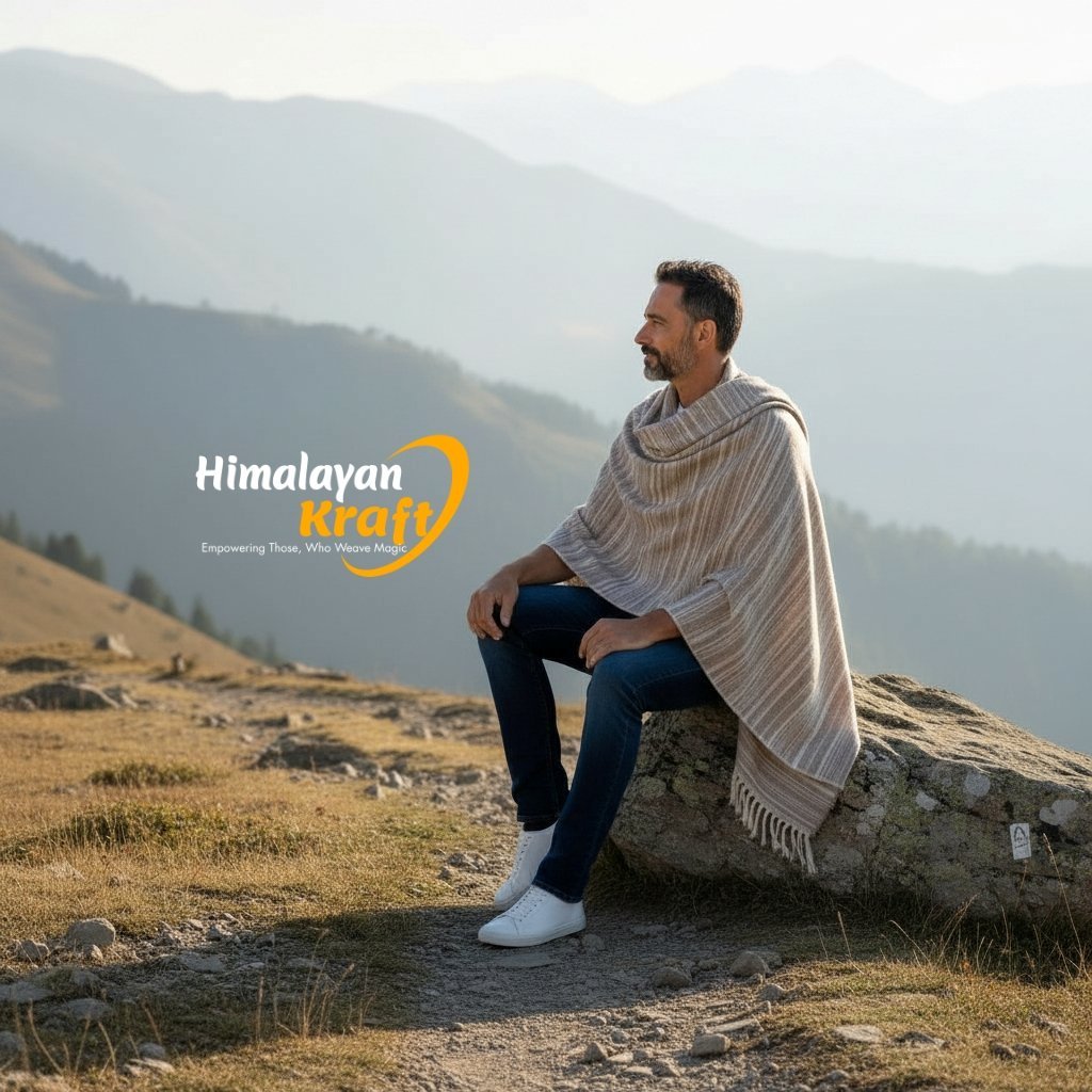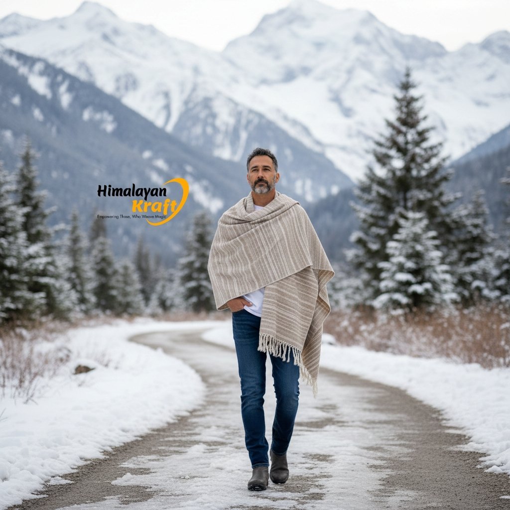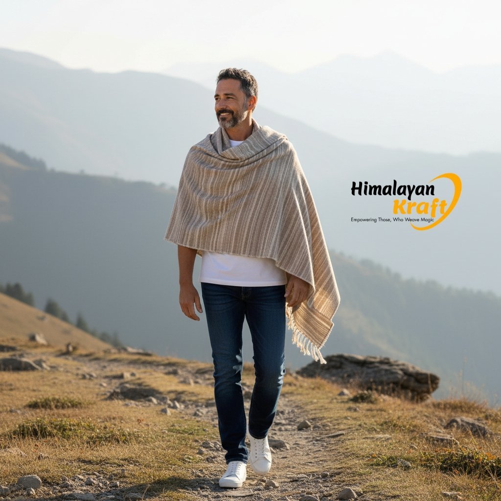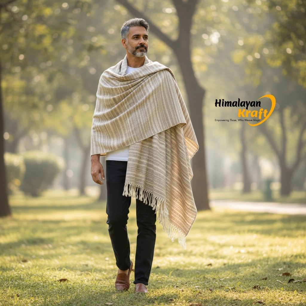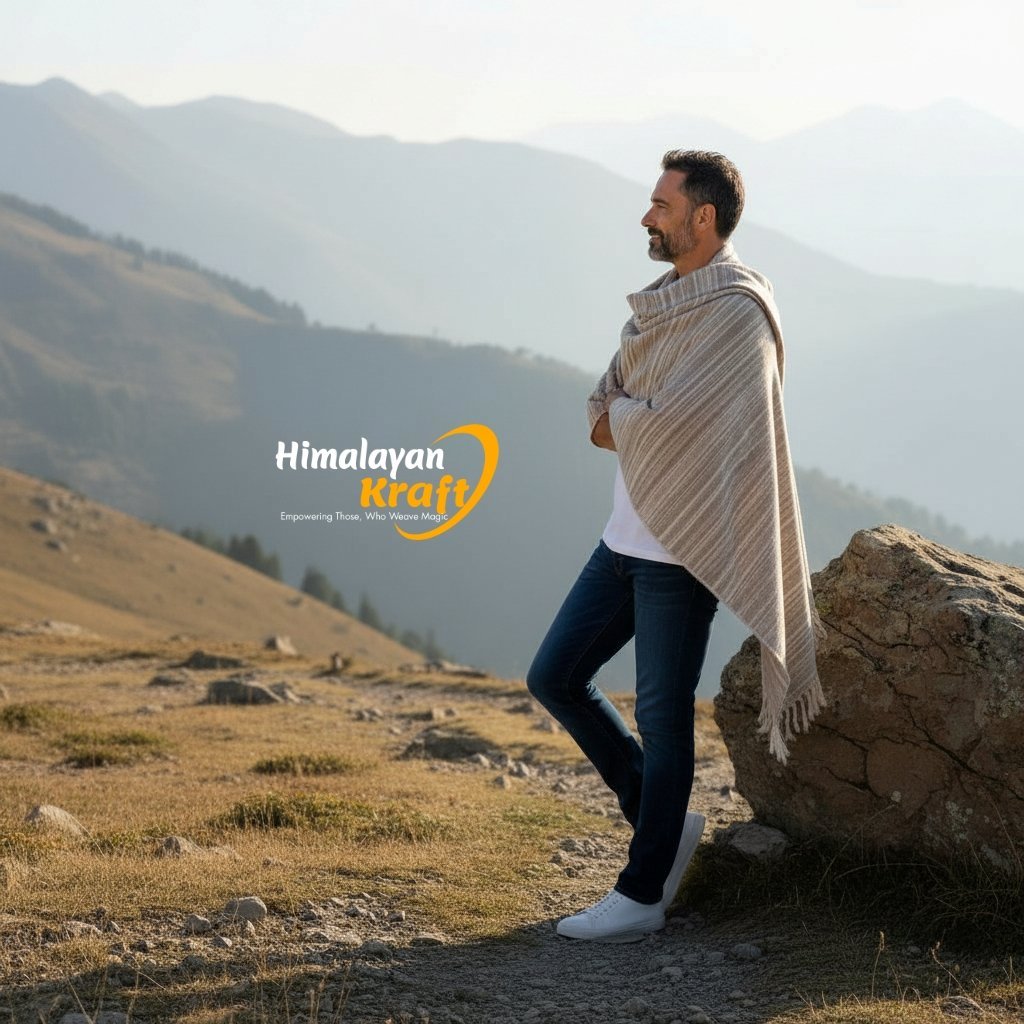 This Cream Handspun Pure Wool Men’s Shawl—traditionally known as Lohi, Loi, Loe, Dushala, or Chadar—is a timeless Himalayan winter essential. Handloom woven by skilled weavers in Kullu, Himachal Pradesh, this shawl uses handspun pure wool yarn, giving it a thick, heavy, and deeply insulating character.