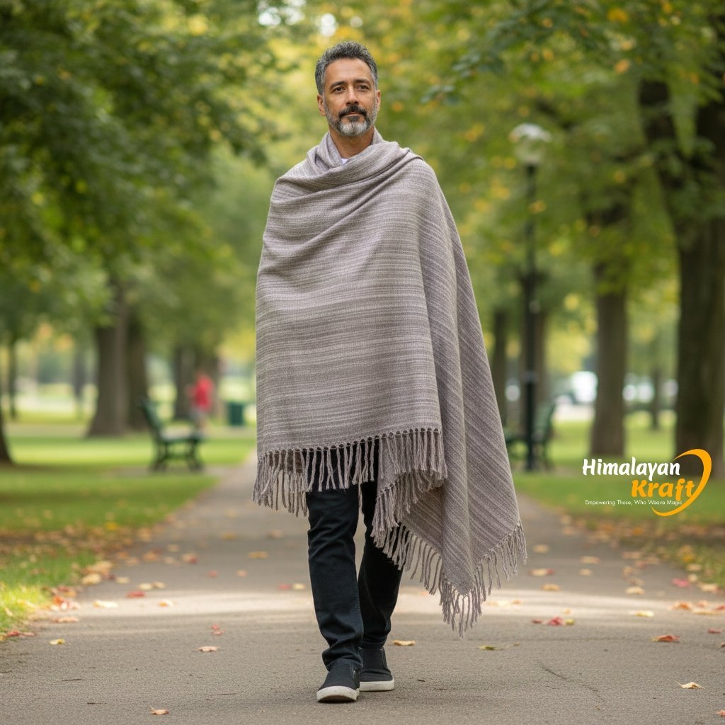 Each grey shawl is handcrafted in small batches. Minor variations in weave, shade, or texture are natural outcomes of handspinning and handloom weaving, and are a mark of authentic craftsmanship, not defects.
