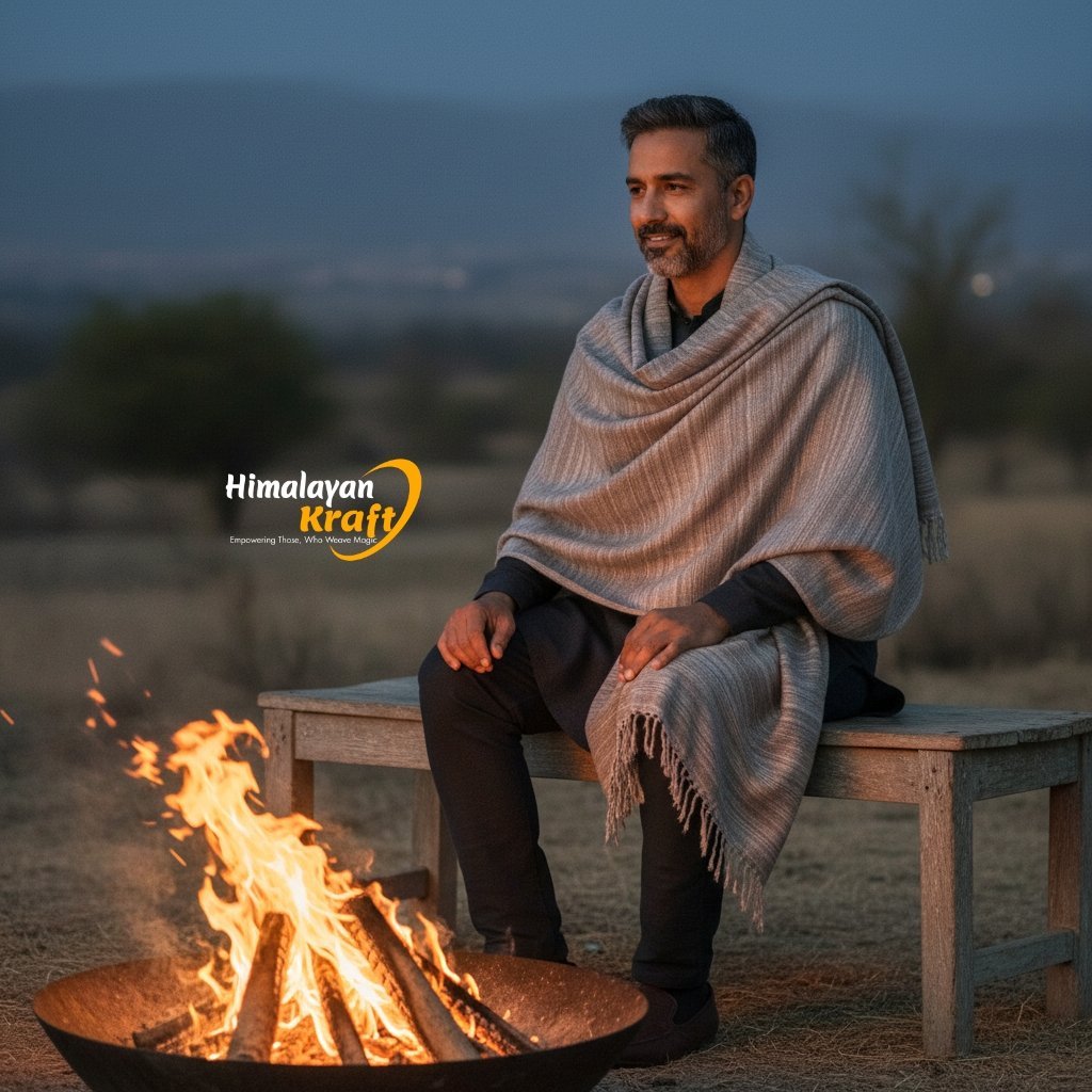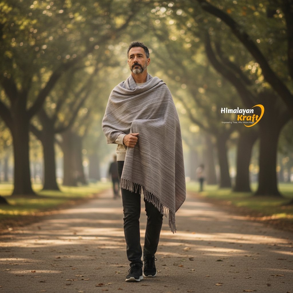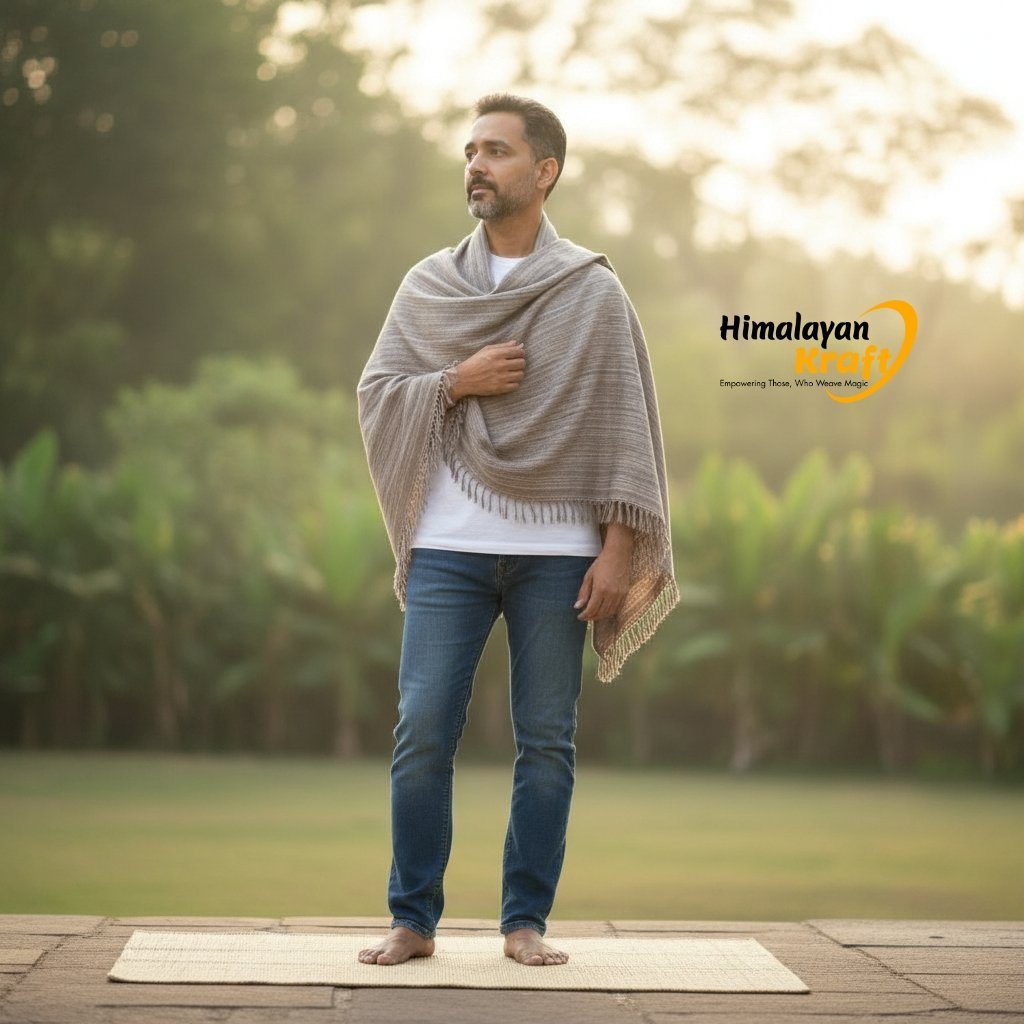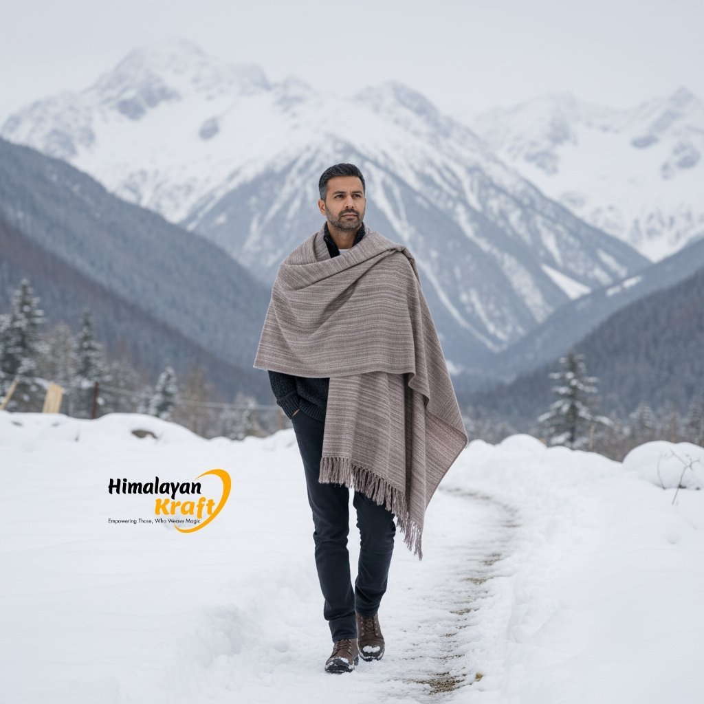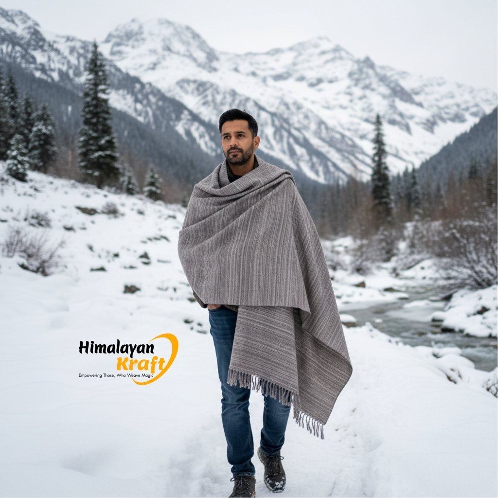 This Grey Handspun Pure Wool Men’s Shawl, also known traditionally as Lohi, Loi, Loe, Dushala, or Chadar, is a timeless winter essential from the Kullu handloom tradition of Himachal Pradesh.