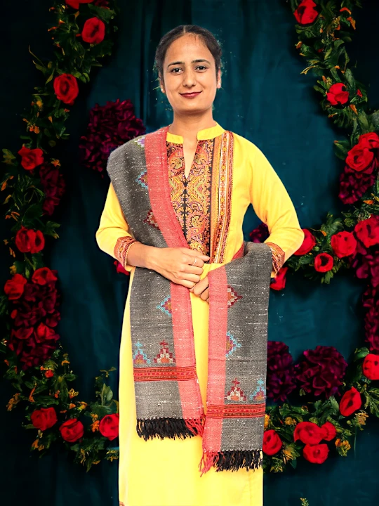 - Distinctive Design: Adorned with traditional motifs and patterns inspired by the rich cultural heritage of the Himalayan region, this stole is a testament to timeless beauty and craftsmanship.