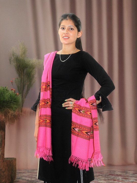 Discover Elegance: Himalayan Weavers’ Handloom Wool Stole – G.I. Patented Kullu Design for Women