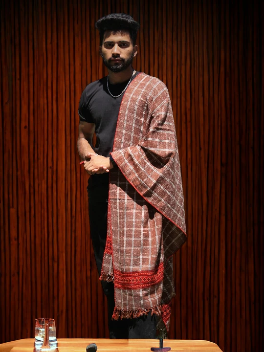 Himachal Elegance: Authentic Kullu Men’s Wool Scarf in Coffee Brown Color