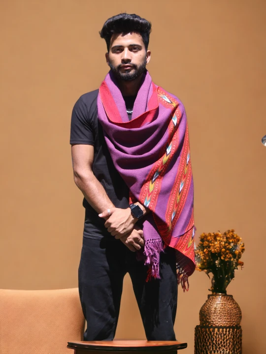 Tradition Meets Trend: Men’s Kullu Wool Stole Scarf in Purple Color