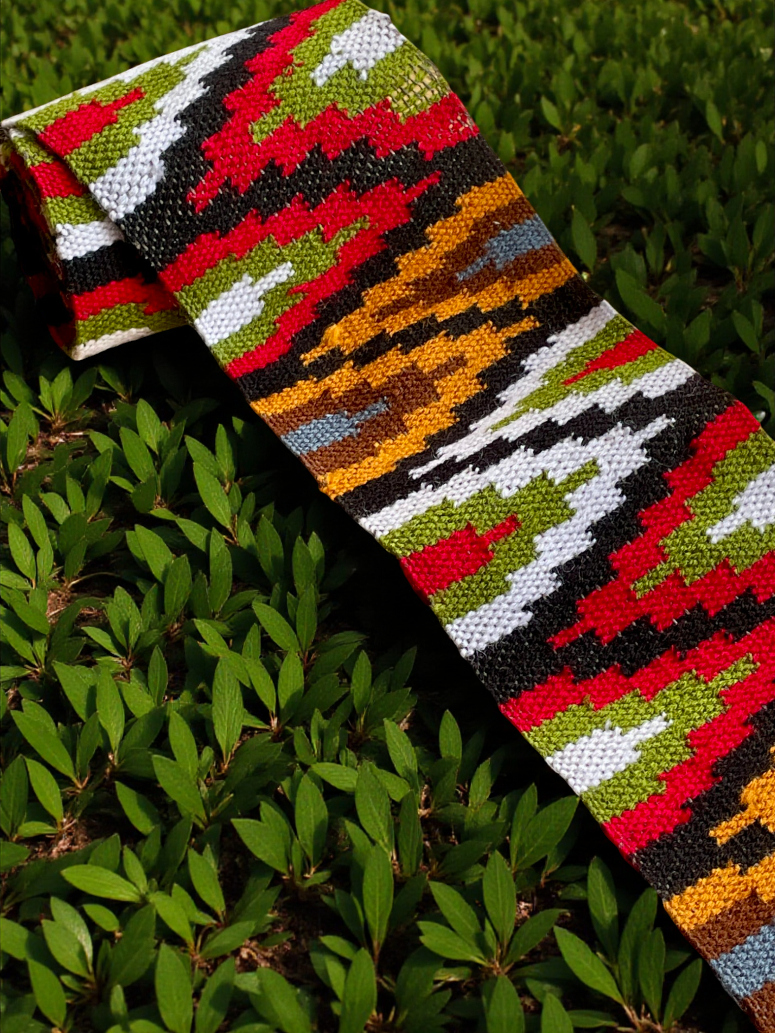 Features iconic geometric Kullu tribal motifs & bright pahadi patterns